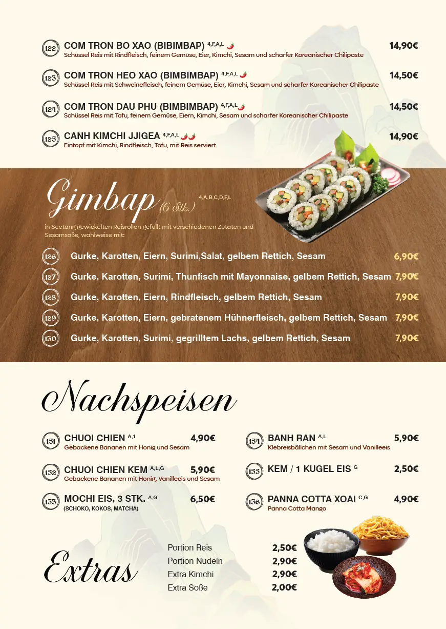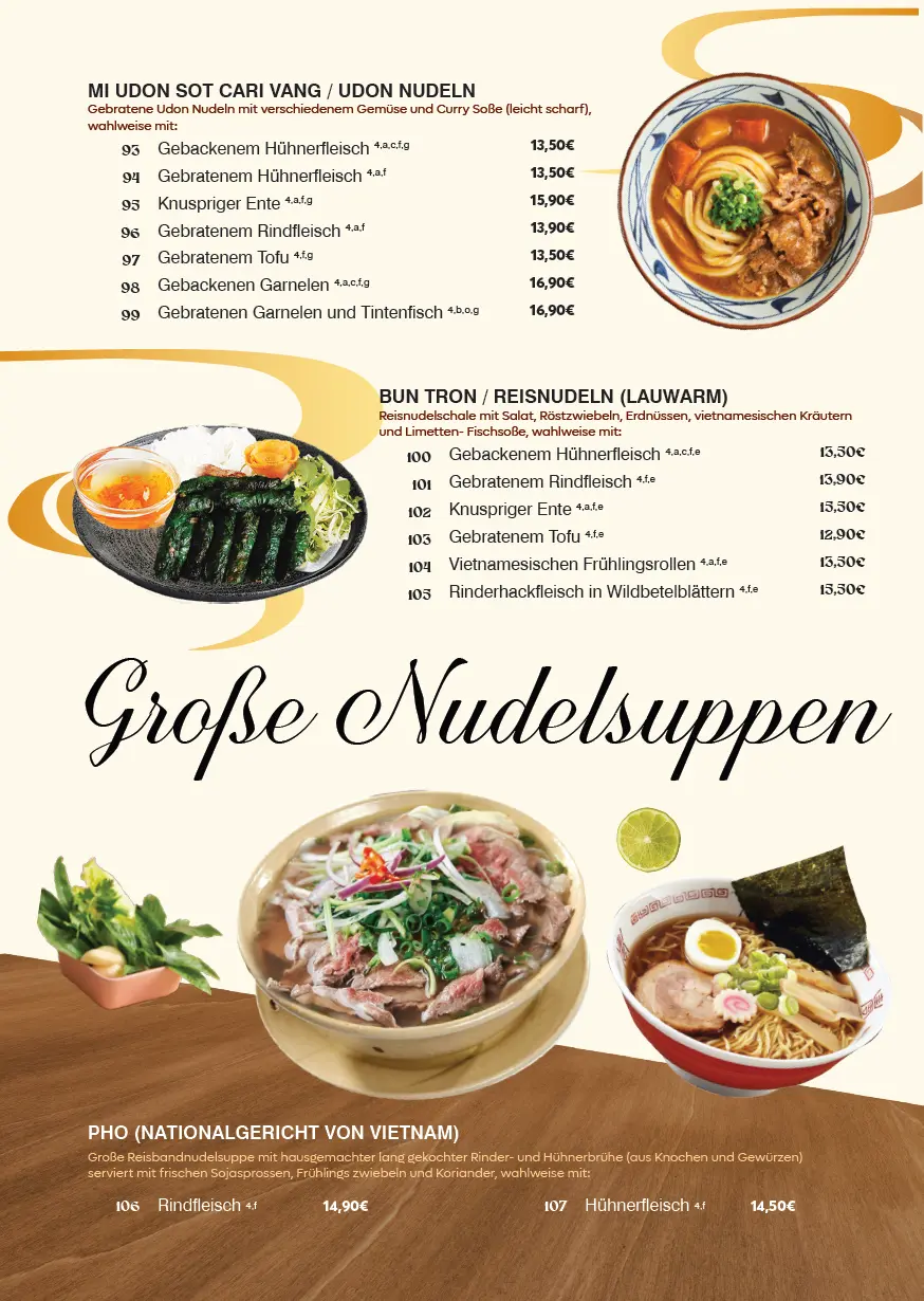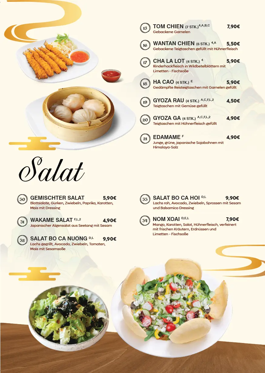 Tauchen Sie ein in die Vielfalt und den Reichtum der vietnamesischen Küche! Unsere Speisekarte bei SAPA wurde mit größter Sorgfalt zusammengestellt, um Ihnen authentische vietnamesische Spezialitäten zu präsentieren. Hier treffen traditionelle Rezepte auf frische Zutaten und handwerkliches Können – eine Kombination, die jeden Besuch bei uns zu einem unvergesslichen Erlebnis macht. Lassen Sie sich von den Aromen Vietnams verzaubern und entdecken Sie die kulinarische Vielfalt dieses einzigartigen Landes.