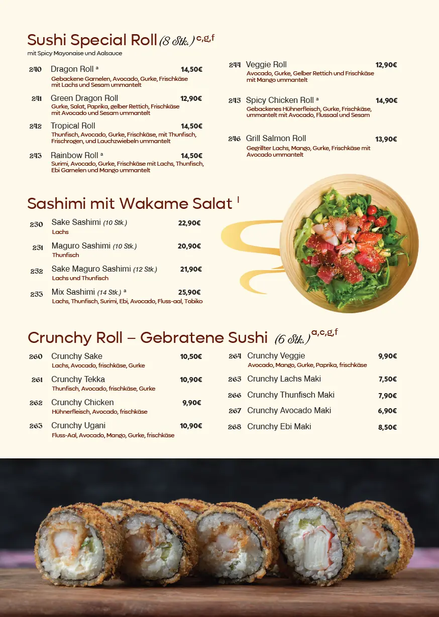 Unsere Sushikarte im SAPA Restaurant Rohrenfels – Frisch & Kreativ!