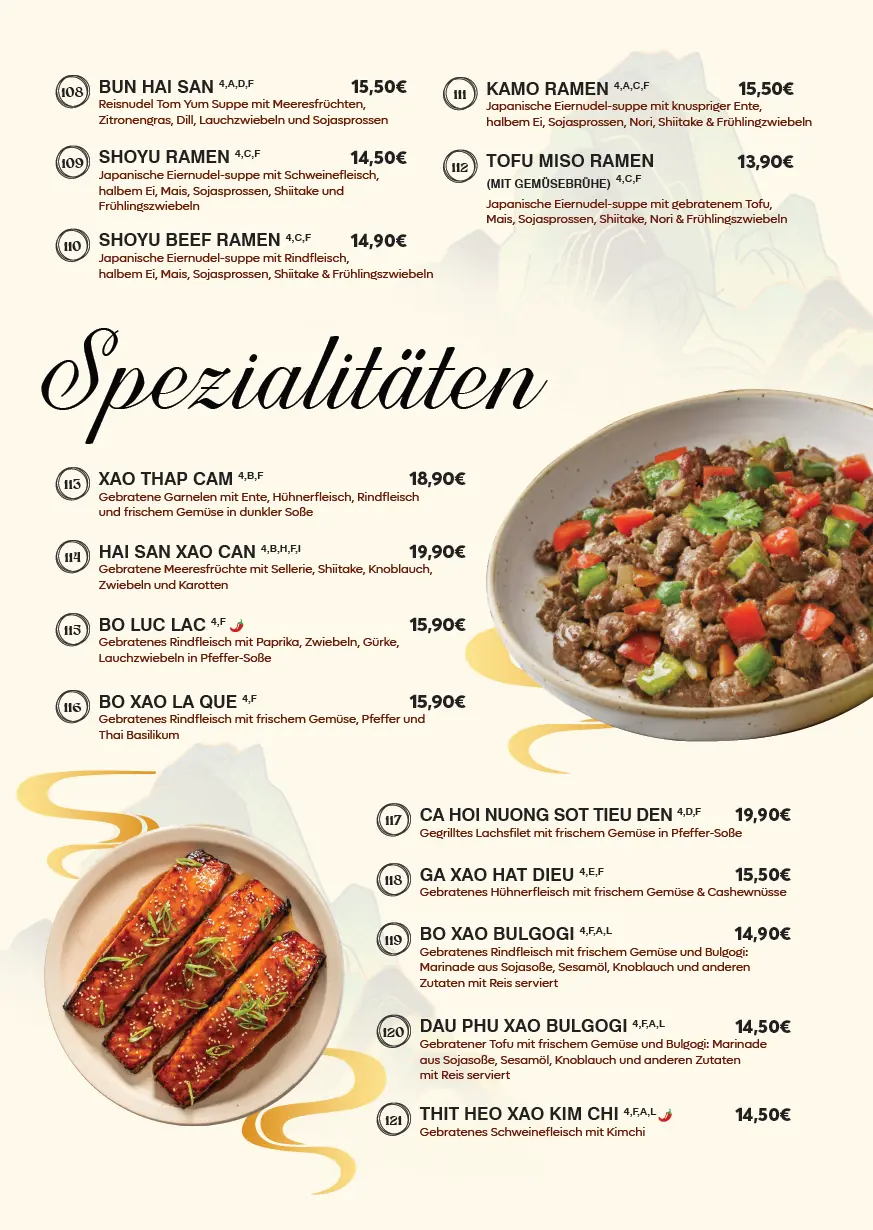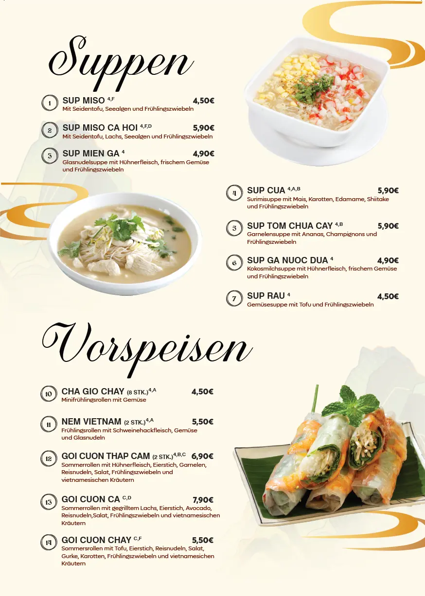 Tauchen Sie ein in die Vielfalt und den Reichtum der vietnamesischen Küche! Unsere Speisekarte bei SAPA wurde mit größter Sorgfalt zusammengestellt, um Ihnen authentische vietnamesische Spezialitäten zu präsentieren. Hier treffen traditionelle Rezepte auf frische Zutaten und handwerkliches Können – eine Kombination, die jeden Besuch bei uns zu einem unvergesslichen Erlebnis macht. Lassen Sie sich von den Aromen Vietnams verzaubern und entdecken Sie die kulinarische Vielfalt dieses einzigartigen Landes.