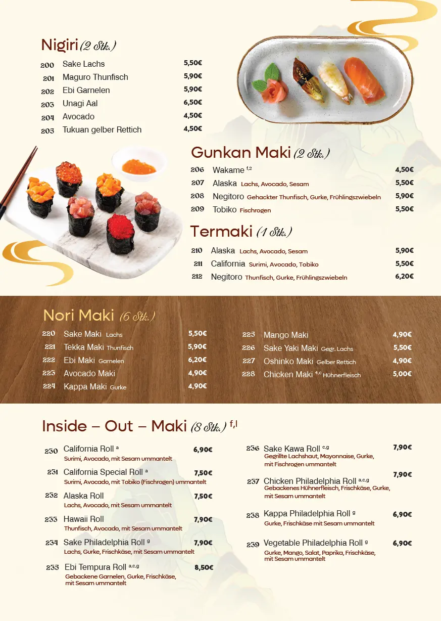 Unsere Sushikarte im SAPA Restaurant Rohrenfels – Frisch & Kreativ!